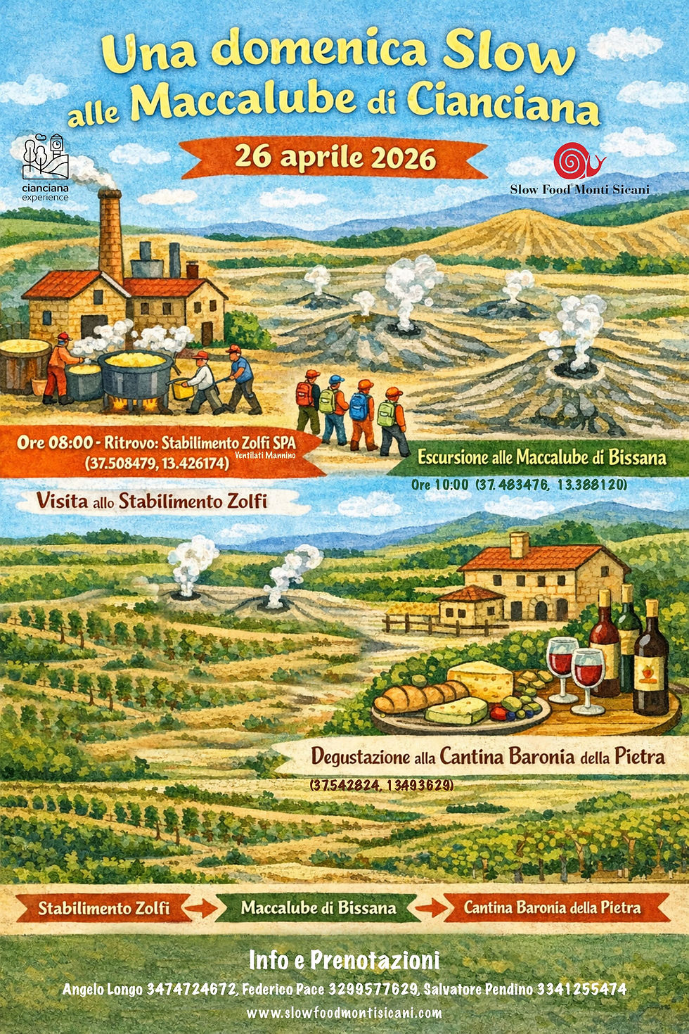 Cammarata 31 marzo 2026 – La Condotta Slow Food Monti Sicani organizza un’intera giornata dedicata alla scoperta del territorio dei Monti Sicani, tra paesaggi suggestivi, fenomeni naturali unici e tradizioni produttive locali. Un’esperienza autentica, pensata per chi desidera vivere il territorio con lentezza, consapevolezza e gusto.